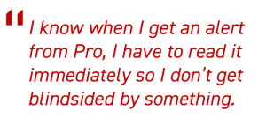 “To sum it up, POLITICO Pro can really be the difference between being on your toes and proactive or being completely blindsided, on your heels and reactive.”